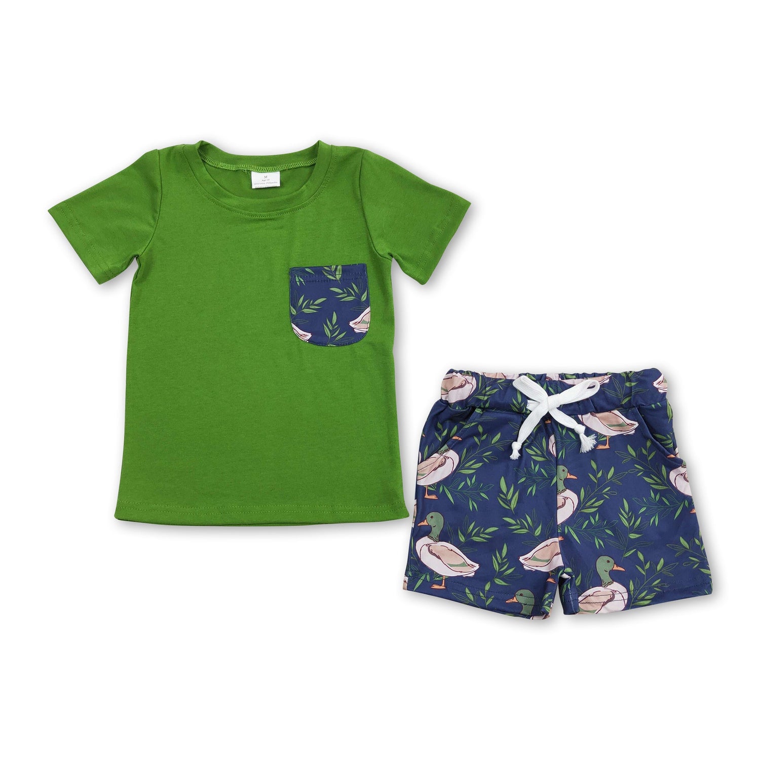 Green duck pocket top shorts kids boys summer clothes - 3-6M is backordered and will ship as soon as it is back in stock.