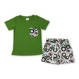 Green pocket top tractor cow shorts boys clothes - 3-6M is backordered and will ship as soon as it is back in stock.