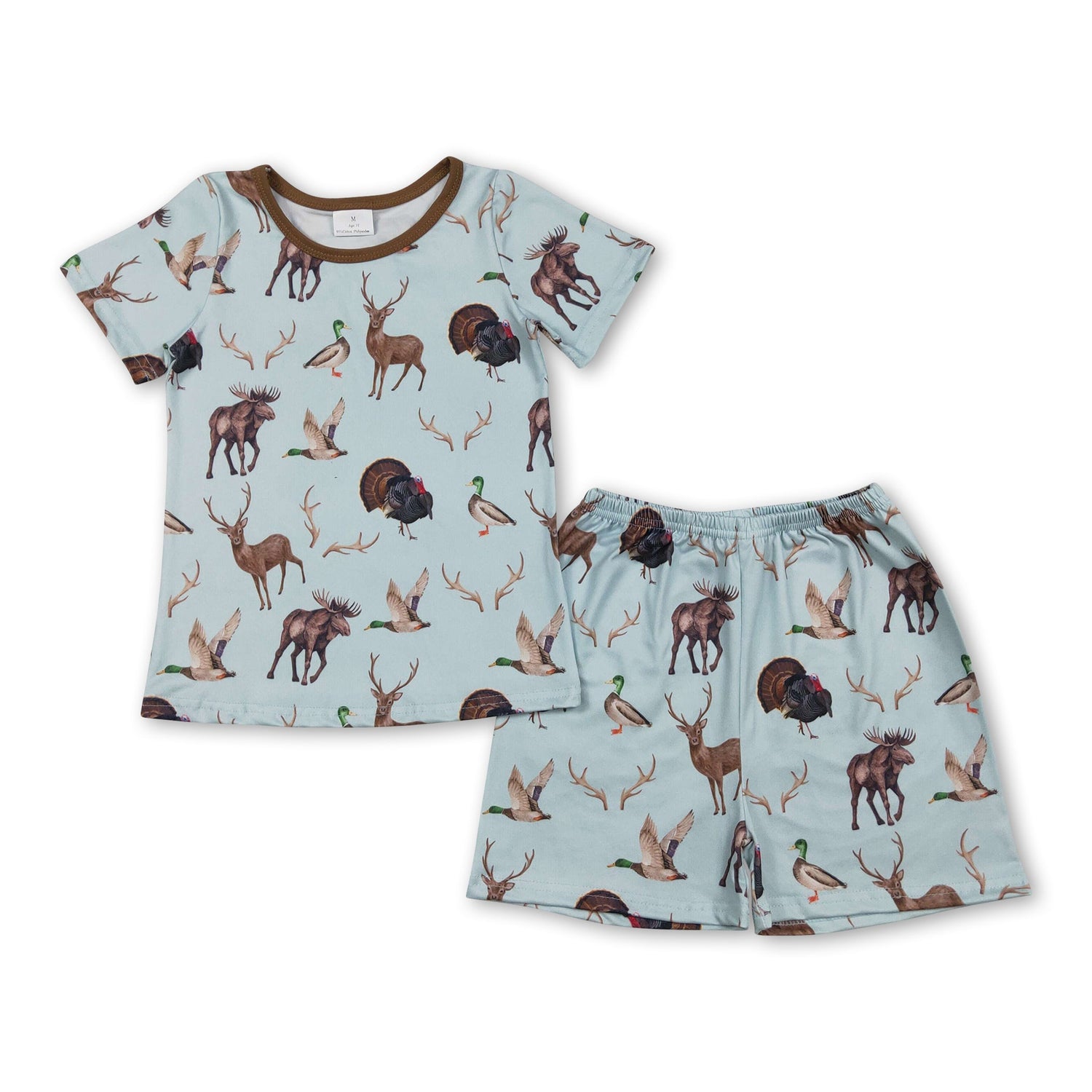 Short sleeves deer turkey duck top shorts boys pajamas set