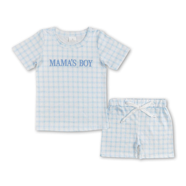 Short sleeves plaid mama's boy kids summer outfits - 3-6M is backordered and will ship as soon as it is back in stock.