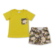 Yellow pocket top hamburger shorts boys summer clothes - 3-6M is backordered and will ship as soon as it is back in stock.