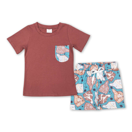 From $1250Unit price /UnavailableBrown tags pocket top shorts western boy summer outfits