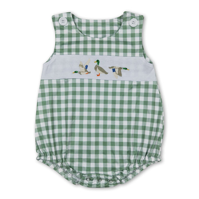 Green plaid sleeveless duck baby boys summer romper - 0-3M is backordered and will ship as soon as it is back in stock.