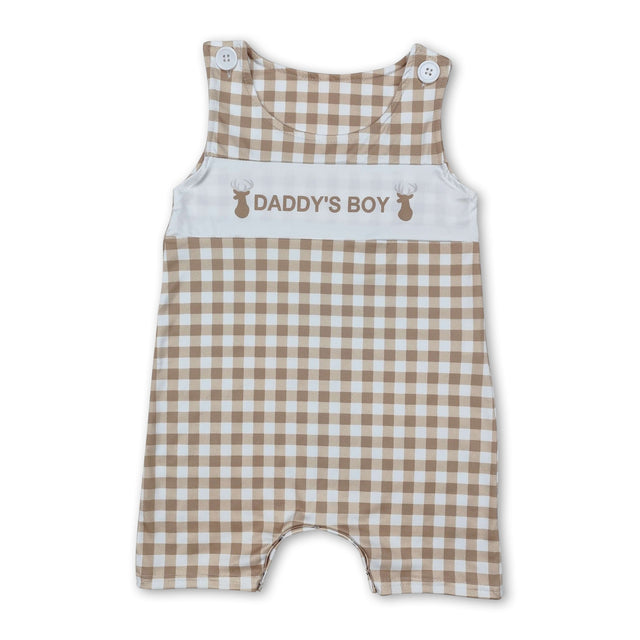 Khaki plaid sleeveless daddy's boy deer baby romper
