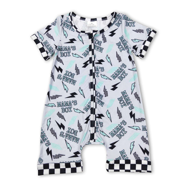 Plaid short sleeves mama's boy thunder baby romper - 0-3M is backordered and will ship as soon as it is back in stock.