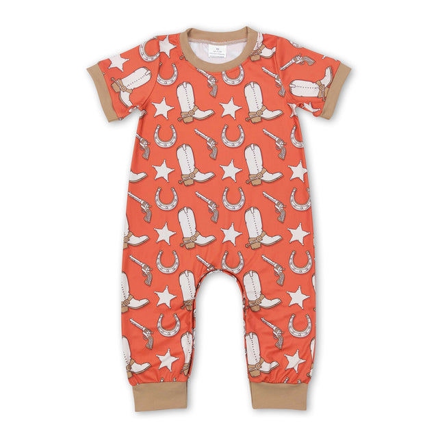 Short sleeves boots horseshoes baby western romper