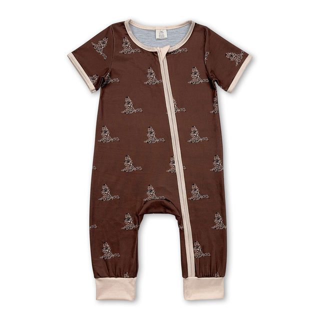 Short sleeves brown camo duck baby boy zipper sleeper