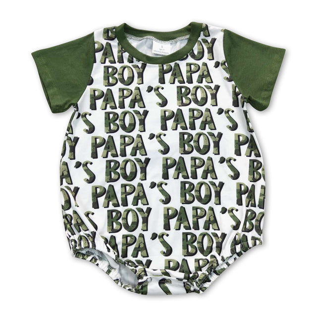 Short sleeves camo papa's boy olive baby romper