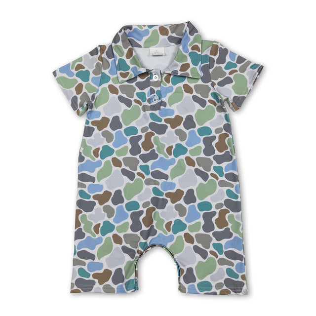 Short sleeves green camo baby boys polo romper - 0-3M is backordered and will ship as soon as it is back in stock.