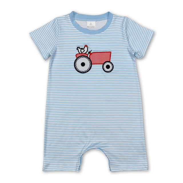 Short sleeves stripe chicken tractor baby boy farm romper