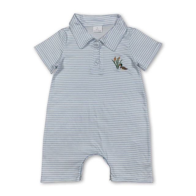 Short sleeves stripe duck baby boy summer romper - 0-3M is backordered and will ship as soon as it is back in stock.