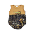 Sleeveless let 'em run deer camo baby boys romper - 0-3M is backordered and will ship as soon as it is back in stock.