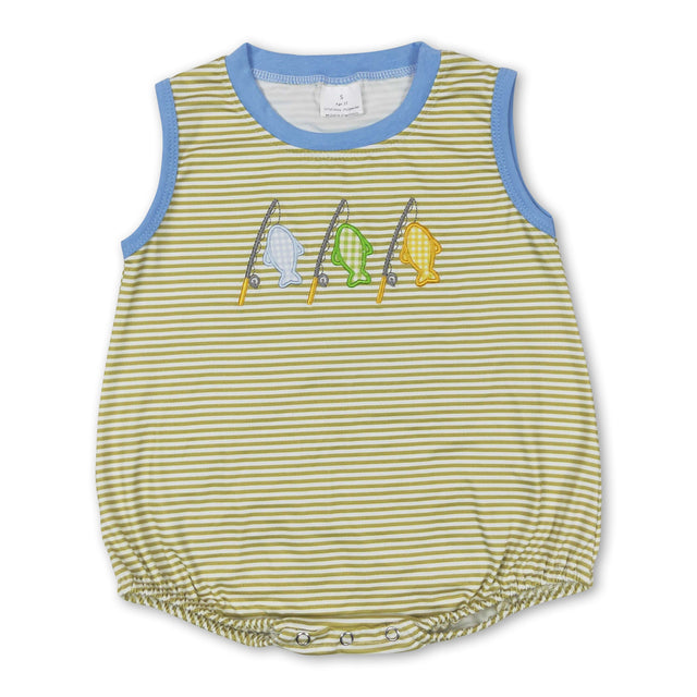 Sleeveless stripe fishing baby boy summer romper - 0-3M is backordered and will ship as soon as it is back in stock.