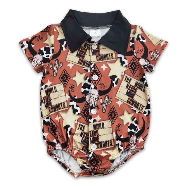 The world need more cowboys bull skull baby boy romper