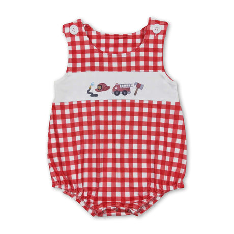 $1100Unit price /UnavailableSleeveless red plaid fire truck baby boys summer romper