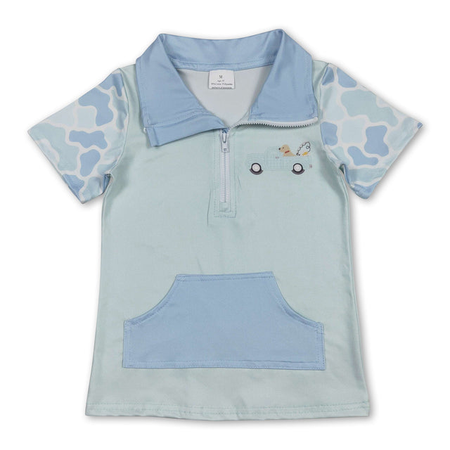 Camo short sleeves dog fishing pocket kids boys pullover - 3-6M is backordered and will ship as soon as it is back in stock.