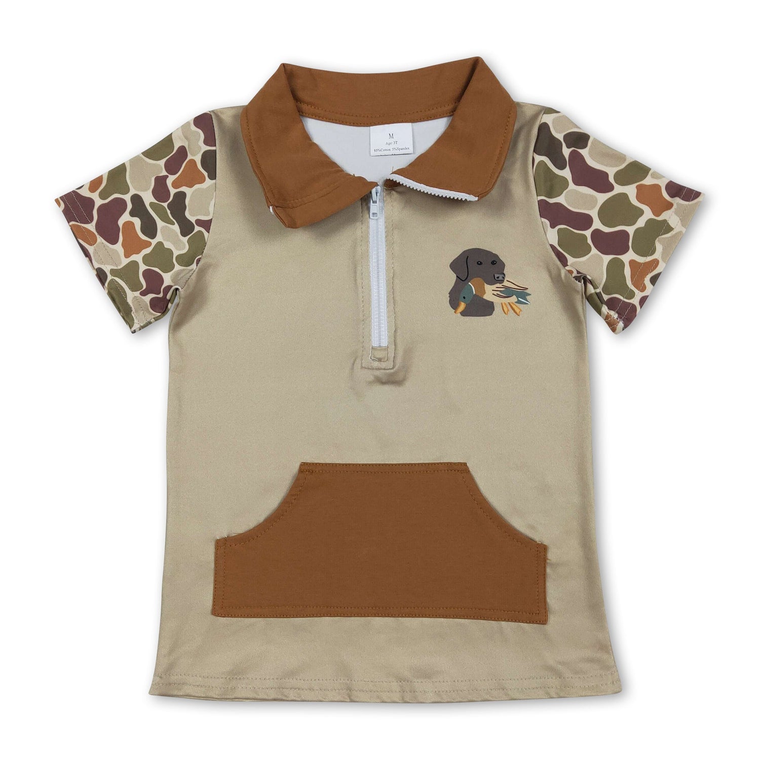 Camo short sleeves dog pocket kids boys pullover - 3-6M is backordered and will ship as soon as it is back in stock.