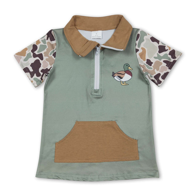 Camo short sleeves duck pocket kids boys pullover