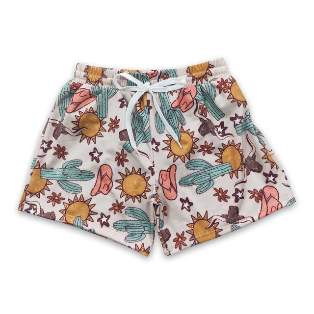 Bull skull highland cow hats boy swim trunks - 3-6M is backordered and will ship as soon as it is back in stock.