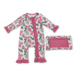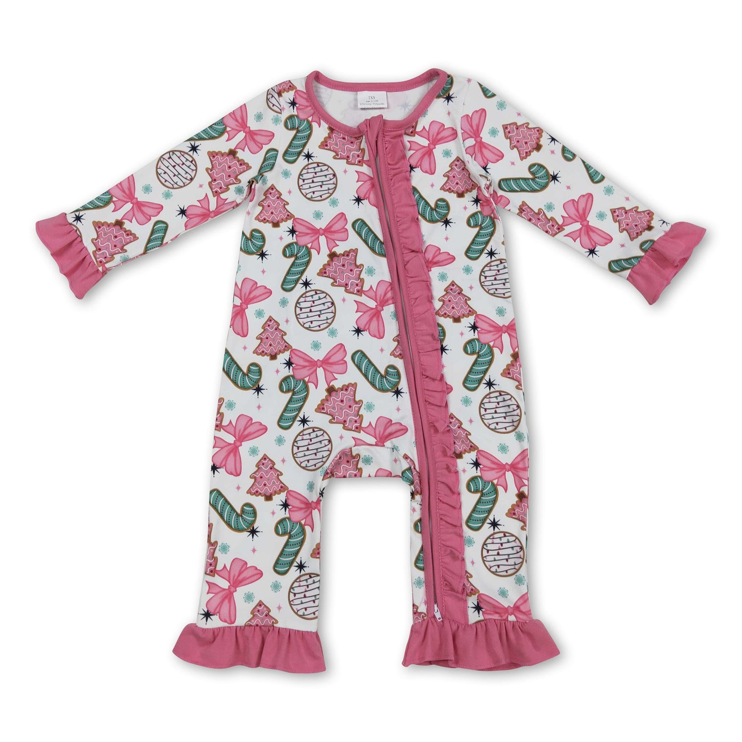 Long sleeves Christmas tree bow candy cane baby zip romper