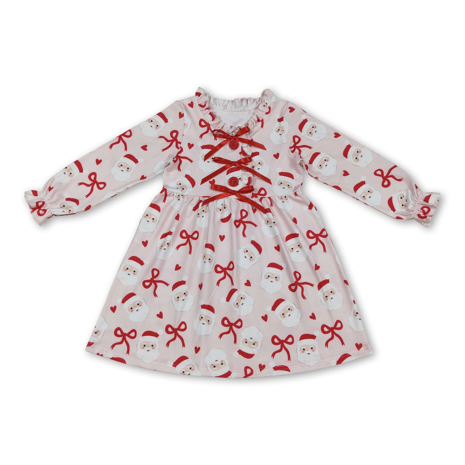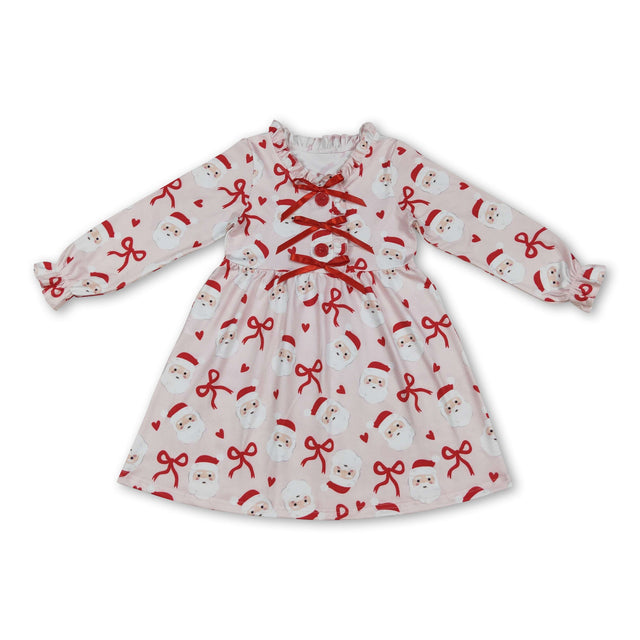 Long sleeves red santa heart kids girls Christmas dresses