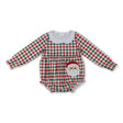 Red green plaid santa baby girl Christmas romper - 0-3M is backordered and will ship as soon as it is back in stock.