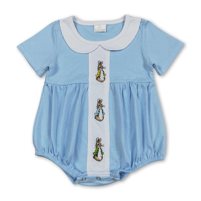 Light blue short sleeves rabbit baby boys Easter romper - 0-3M is backordered and will ship as soon as it is back in stock.