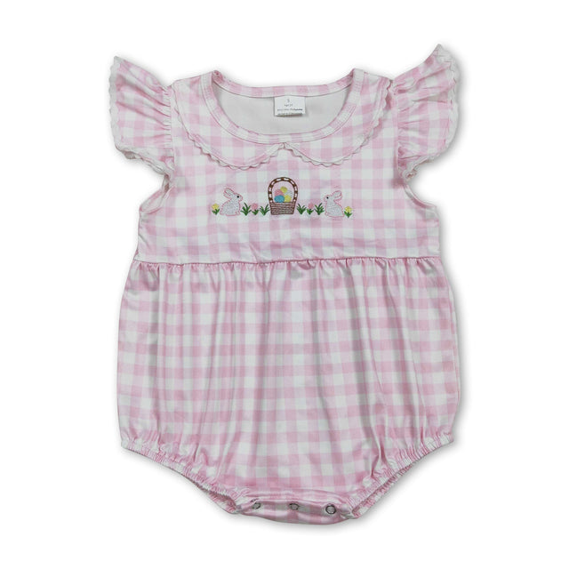 Pink plaid flutter sleeves rabbit baby girls Easter romper