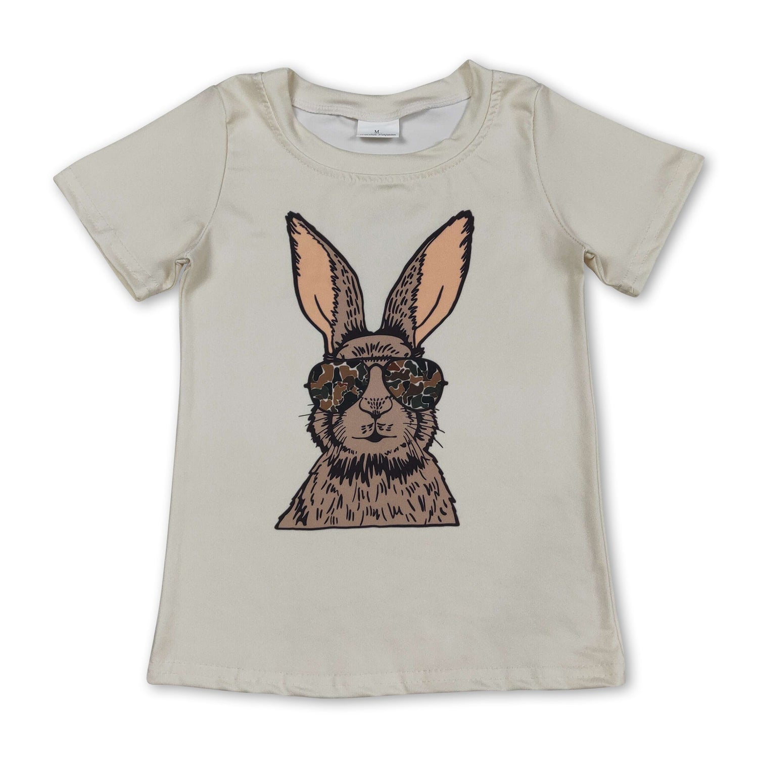 Short sleeves camo glasses rabbit kids boys Easter shirt
