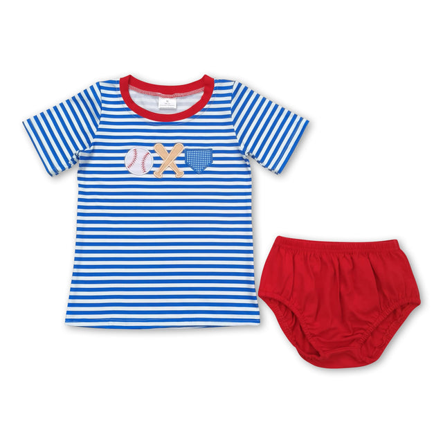 Blue stripe baseball top bummies baby boys clothes - 0-3M is backordered and will ship as soon as it is back in stock.