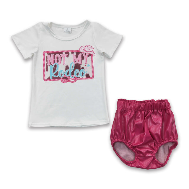Not my rodeo shirt hot pink leather bummies girls outfits - 3-6M is backordered and will ship as soon as it is back in stock.