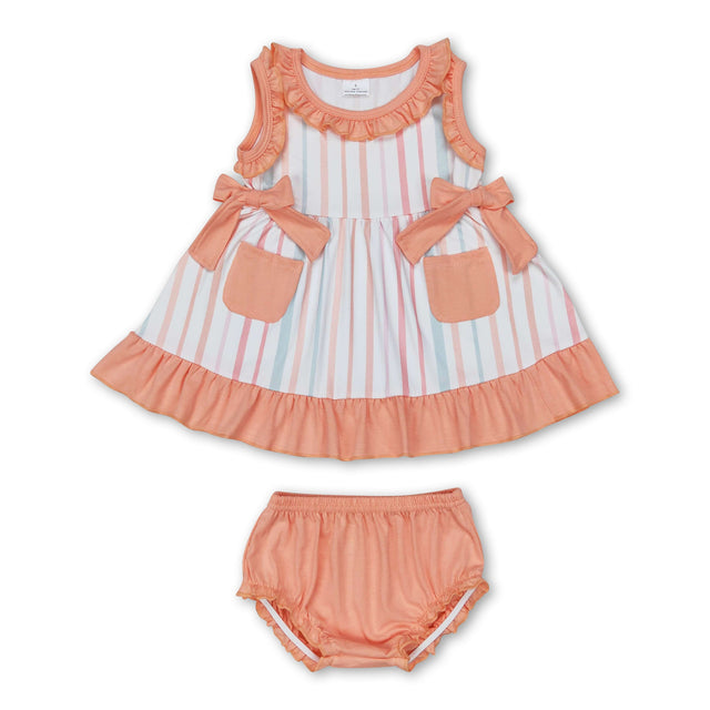Peach stripe pockets tunic bummies baby summer clothes - 0-3M is backordered and will ship as soon as it is back in stock.