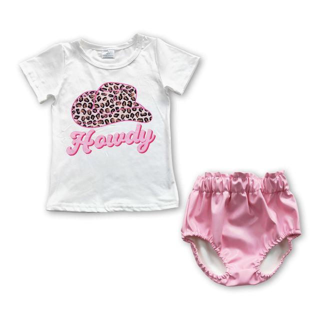 Pink howdy hat shirt leather bummies baby clothes - 3-6M is backordered and will ship as soon as it is back in stock.