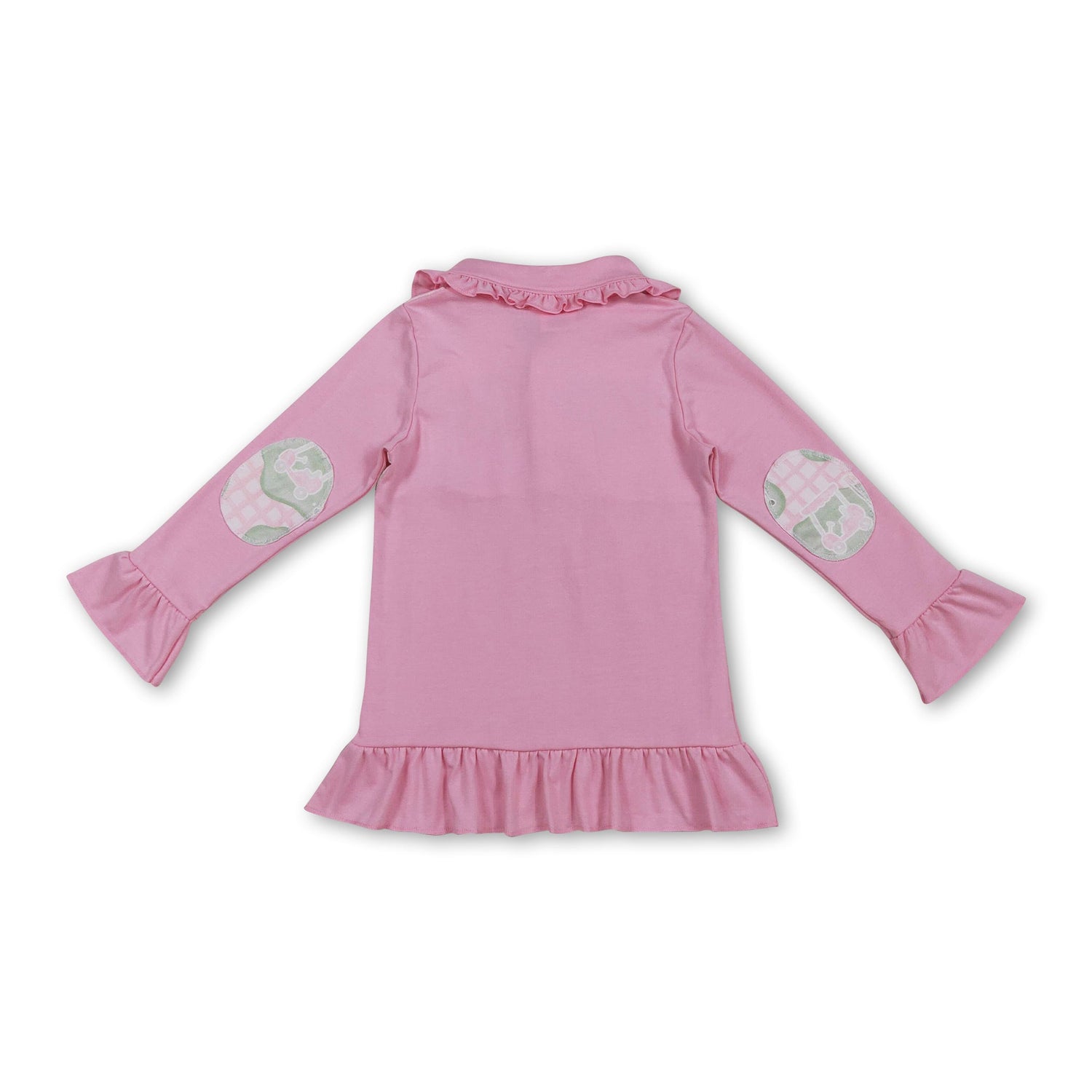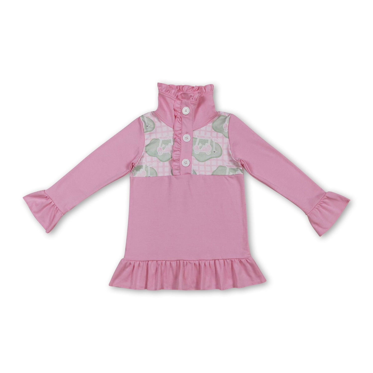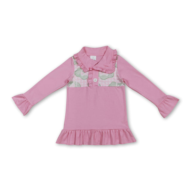 Pink long sleeves ruffle golf plaid baby girls pullover