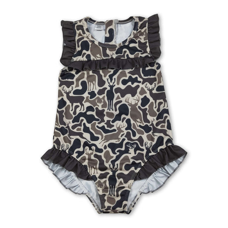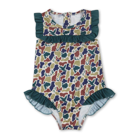 Ruffle deer duck dog bear hunting baby girls swimsuit
