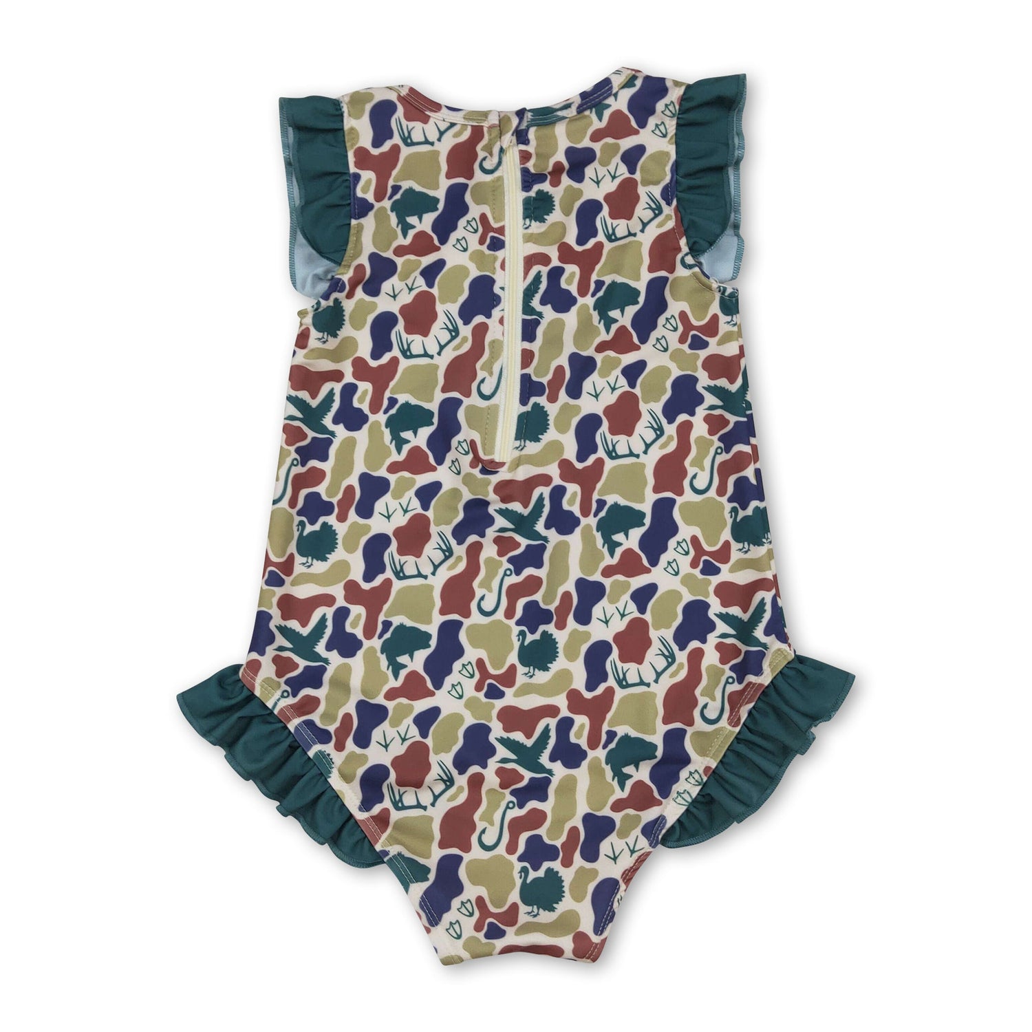 Ruffle camo deer duck fishing hunting baby girls swimsuit