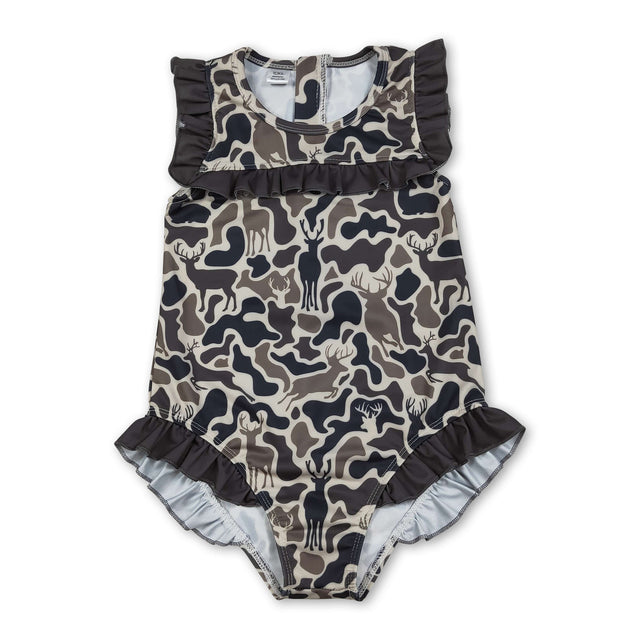 Ruffle camo deer hunting baby girls one piece swimsuit