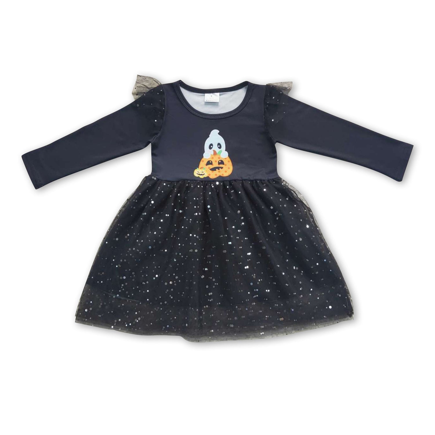 Ghost pumpkin long sleeves baby girls tulle Halloween dresses