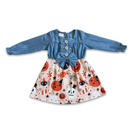 $1150Unit price /UnavailableDenim long sleeve pumpkin candy spider girls Halloween dress