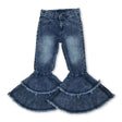 White washed ruffle bell bottom girls denim pants