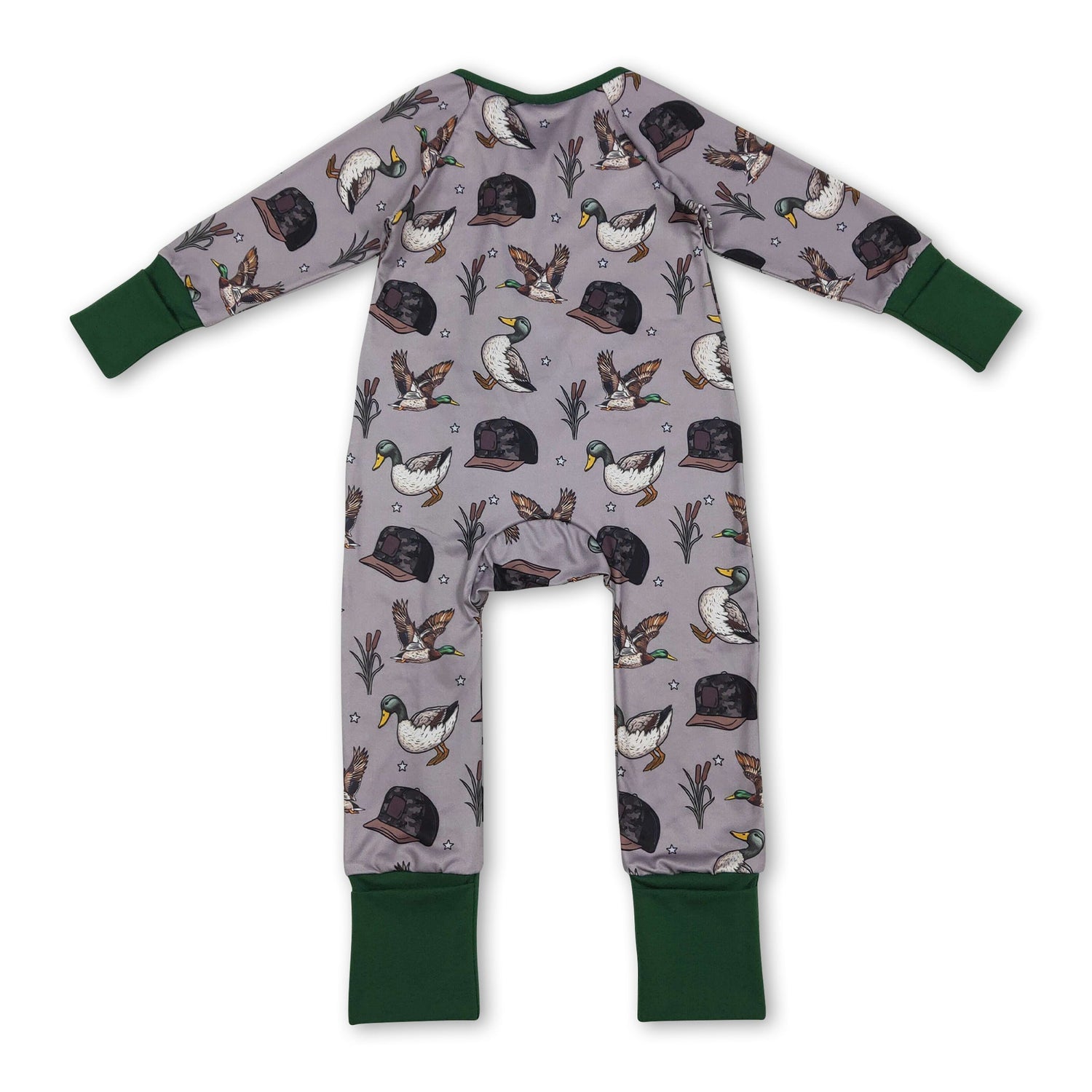 Long sleeves green duck camo hat baby girls zipper romper - 0-3M is backordered and will ship as soon as it is back in stock.