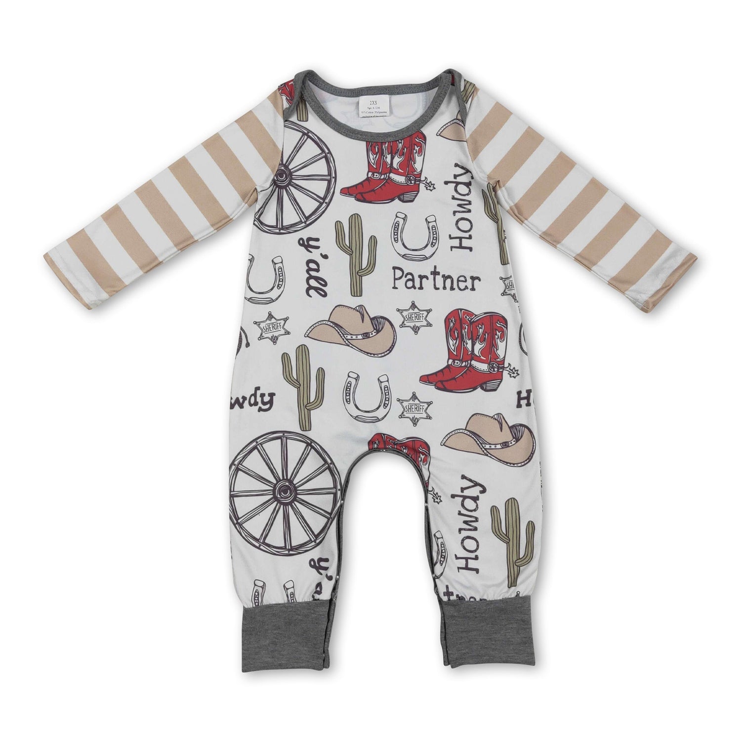 Stripe long sleeves cactus boots western boy romper - 0-3M is backordered and will ship as soon as it is back in stock.