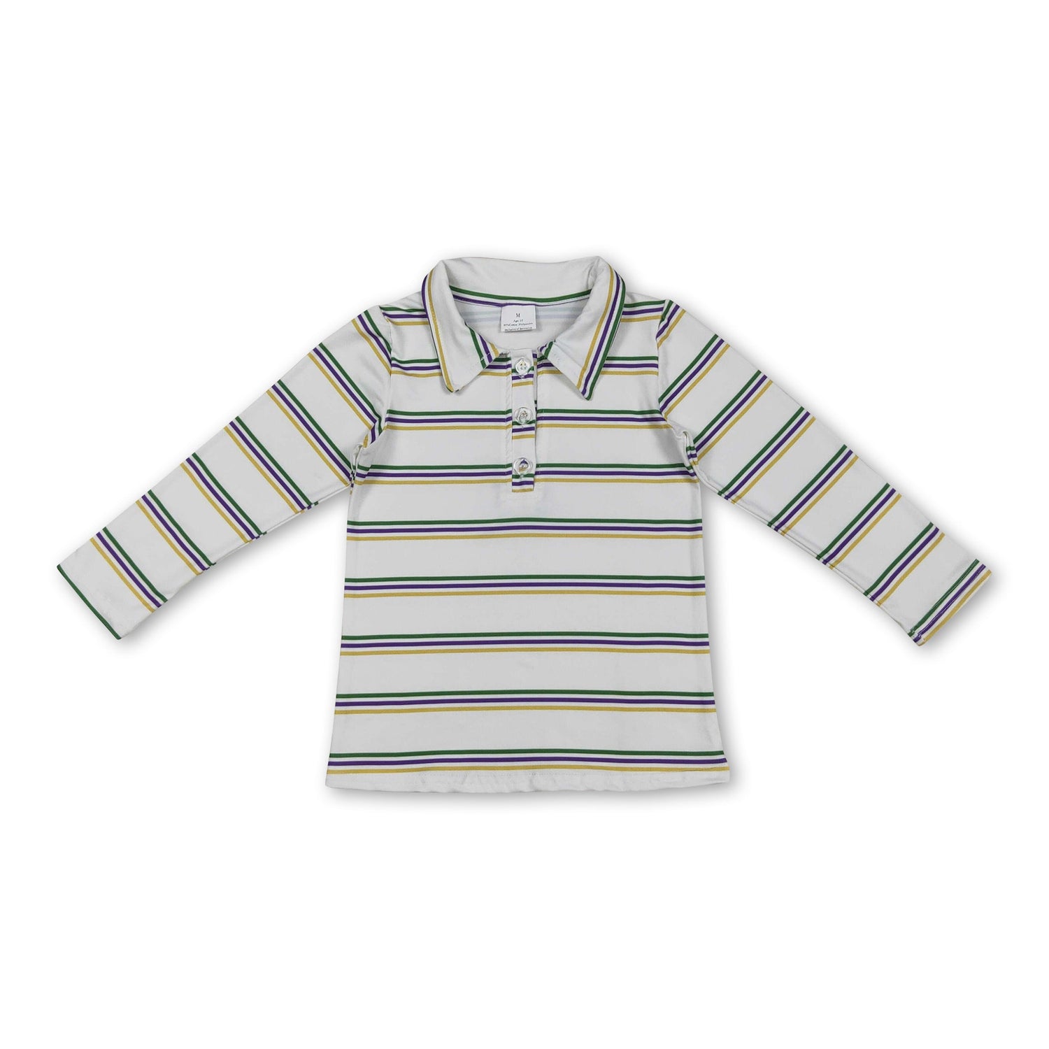 Green purple yellow stripe boys Mardi Gras polo shirt