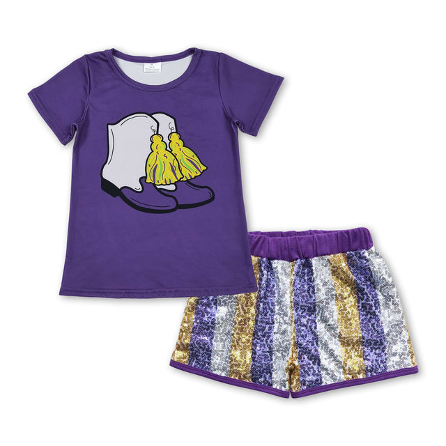 Purple boots top stripe sequin shorts girls Mardi Gras outfits