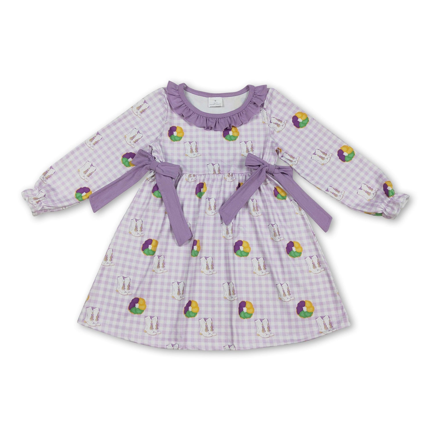Purple yellow green donut boots plaid girls Mardi Gras dress