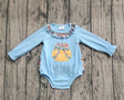 Long sleeves floral bow pumpkin ruffle girls fall romper