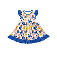 MOQ 3 pcs flutter sleeves K U blue bows girls team dress
