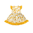 MOQ 3 pcs flutter sleeves P yellow bows girls team dress