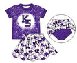 MOQ 3 pcs purple K S bleached top bow skirt girls team outfits