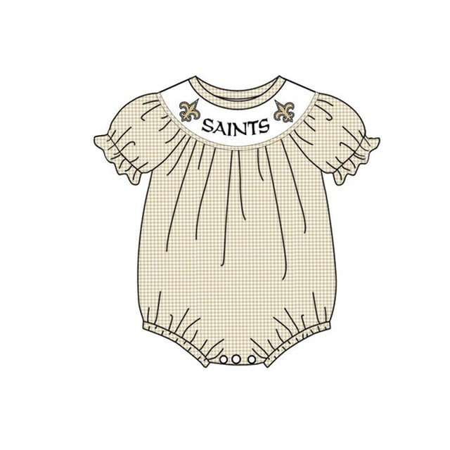 MOQ 3 pcs short sleeves khaki plaid girls team romper - 0-3M is backordered and will ship as soon as it is back in stock.